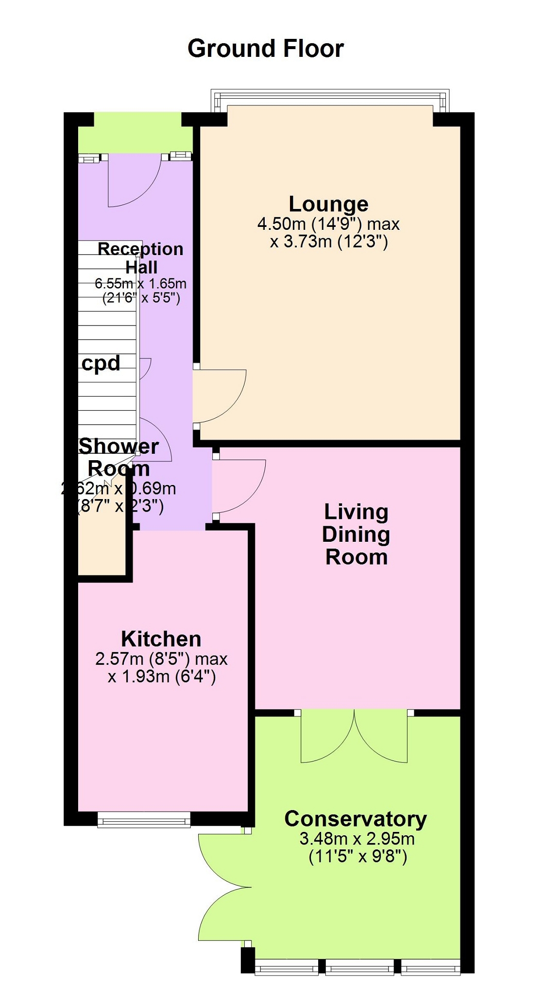 Dimensions: 21' 06" x 5' 05" Max x 3' 7" Min / 6.55m x 1.65m Max x 1.09m Min