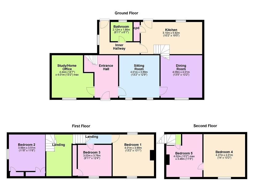 Bedroom 5 (13′ 02″ x 11′ 05″ or 4.01m x 3.48m)