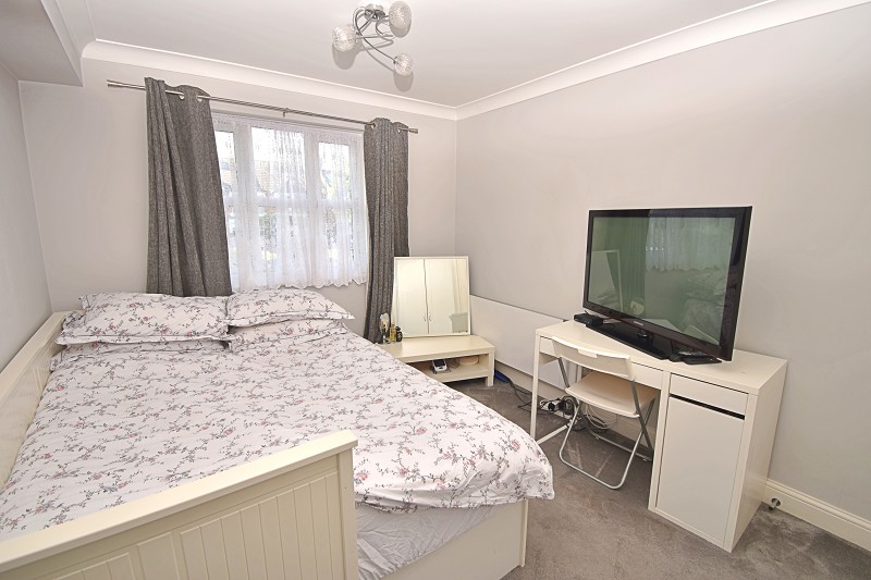 A good size Double with double glazed windows to the front elevation with an outlook along The Avenue, electric heater to one side, built in wardrobe with shelving and drawers, cupboard housing water tank and shelving.