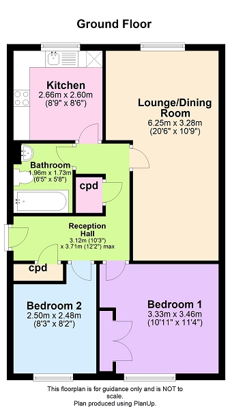 This ground floor apartment offers plenty of living space with spacious lounge dining room, fitted kitchen with some appliances, 2 good size bedrooms, and bathroom. Together with well kept communal gardens to the rear.