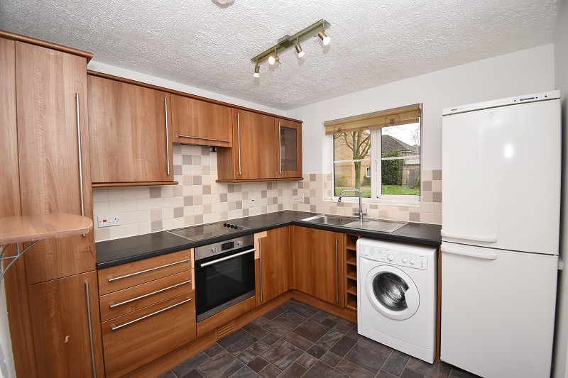 Range of wall and base units offering plenty of storage, electric hob and oven beneath, washing machine, upright fridge freezer. Double glazed replacement window to the rear elevation overlooking gardens.