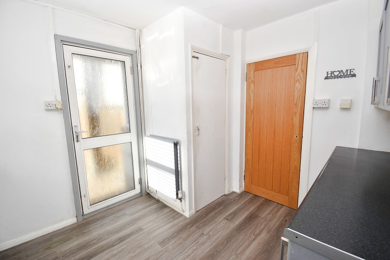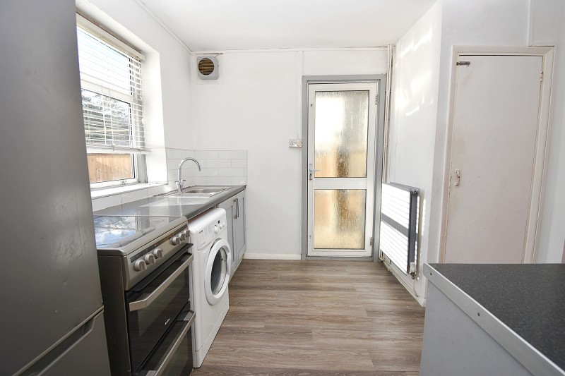 This fitted kitchen features part tiled walls, a practical arrangement of grey base and eye level units, worktop space, single sink unit with mixer tap and drainer, double radiator, double glazed window to the rear aspect, that provides a lovely view of the family sized rear garden. Additionally, there is plumbing provision for an automatic washing machine, together with space for an electric cooker and fridge freezer. Double glazed door that provides access to the rear garden. To the side elevation, there is a storage cupboard with shelving and small glazed window, housing the electric meter and consumer unit.