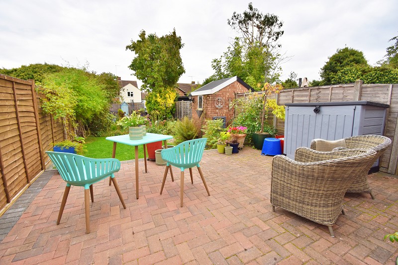 The front garden is paved, and is walled to the boundary, and to the side there is gated access to a lovely east facing rear garden plot, which features “front and back” spacious patio terraces, lawns and planted beds providing all year round colour. There is also a useful outside store.