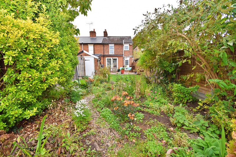 From the walled front garden, there is gated side access to a colourfully enclosed rear plot, which includes two spacious patio terraces, lawns and a shaped shingle stone pathway with planted borders either side, outside store and lighting.