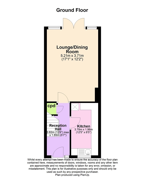 Reception Hall (12′ 06″ x 5′ 07″ or 3.81m x 1.70m)