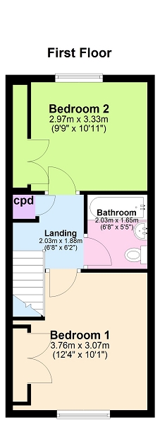 Landing (6′ 08″ x 6′ 02″ or 2.03m x 1.88m)