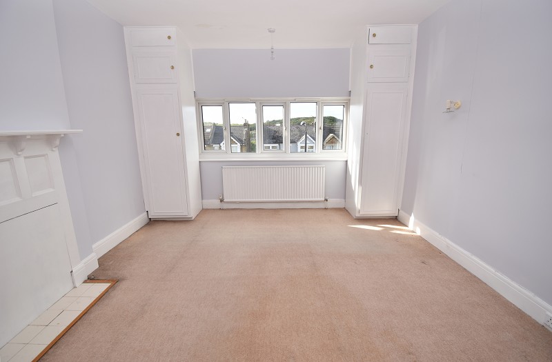 Wide double glazed replacement windows to the front elevation providing some lovely far reaching views due to the property’s elevated position, fitted wardrobe cupboards to either side and radiator beneath. Feature fireplace (not live), fitted wardrobe cupboard space to one wall.