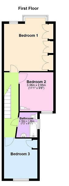 Bedroom 2 (11′ 01″ x 9′ 08″ or 3.38m x 2.95m)