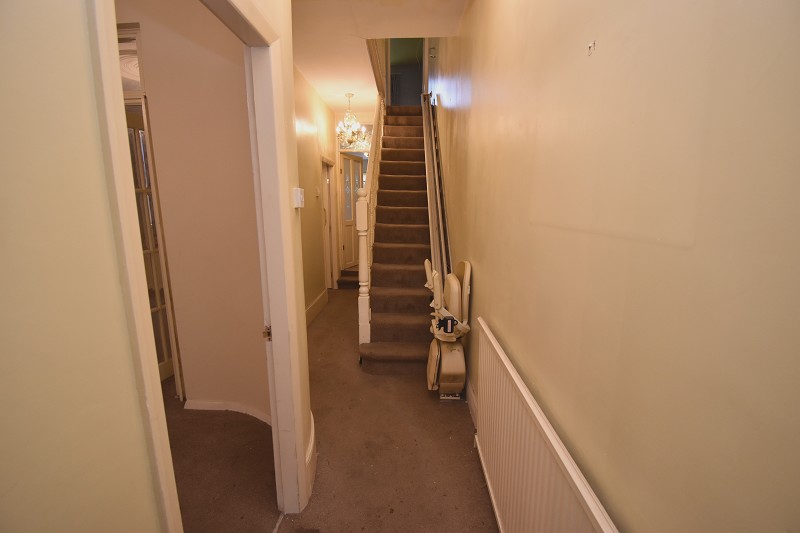 The reception hall features a high ceiling, coving with an ornate design, single radiator to one side, an understairs storage cupboard that houses the gas and electric meter together with the consumer unit. Part glazed doors provide access to each room off, together with a step up to the kitchen. Stairs rise to the first floor accommodation.